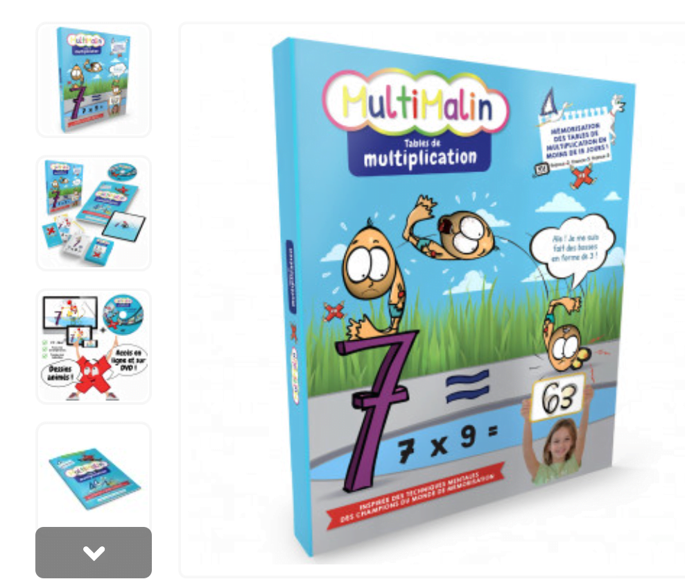 Il existe différents produits chez Multimalin mais celui que je vous recommande  pour l’apprentissage rapide des tables de multiplication est: