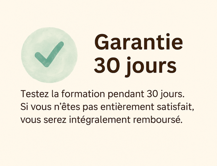 Vous avez 30 jours complets pour commencer la méthode et appliquer les conseils dans votre quotidien.